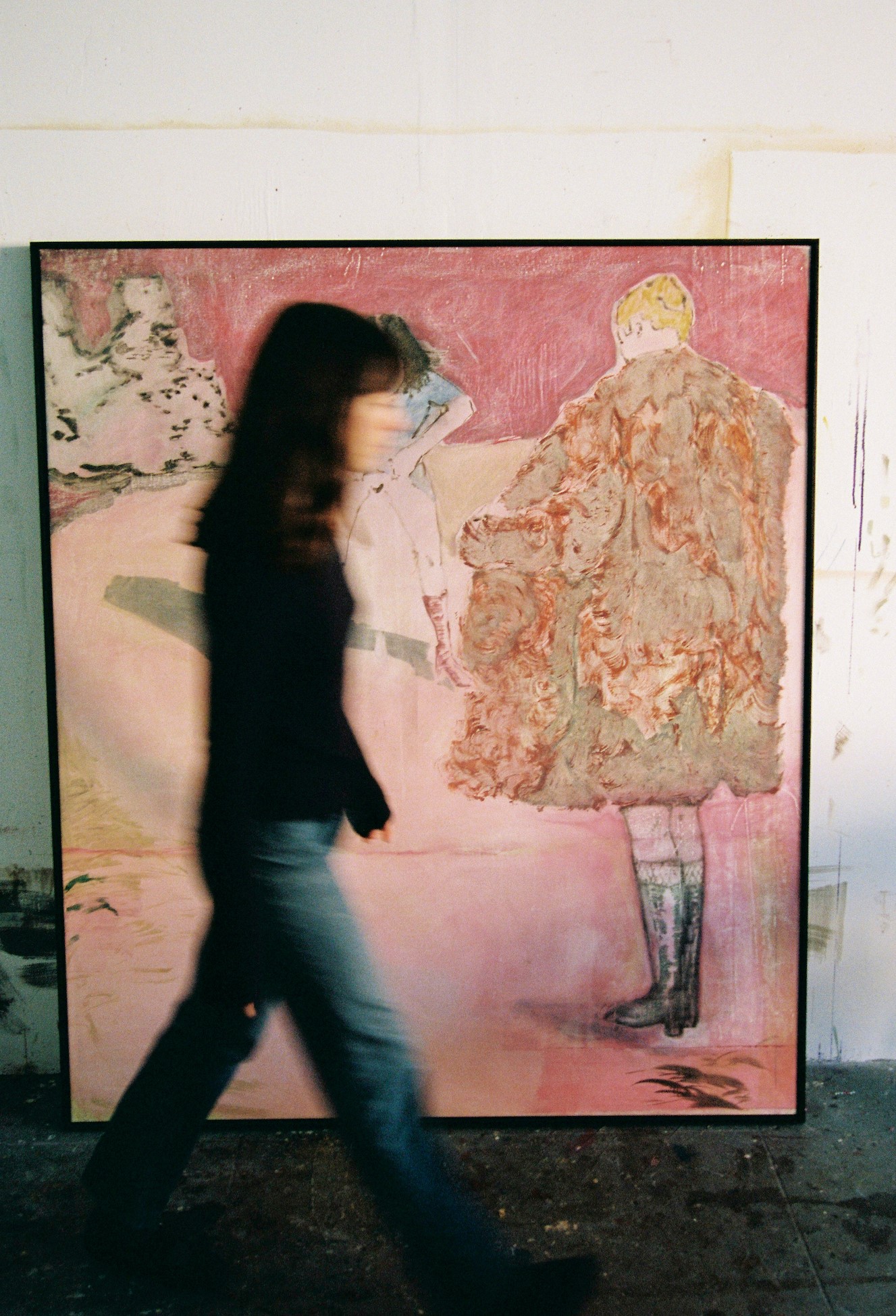 Trabajo desde el trazo y el vaciado como gestos fundamentales. Construyo imágenes a través de capas diluidas y veladuras que luego borro, lijo o desplazo, entendiendo la pintura como un proceso de aparición y desaparición constante. La imagen no se impone: emerge, se erosiona y vuelve a configurarse.